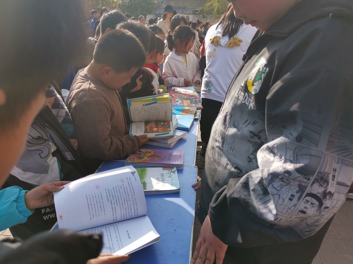 活动前夕,各班主任组织学生开展图书漂流班会,旨在介绍活动的主要宗旨是交换图书,变废为宝,分享读书心得,接着各班主任组织挂横幅,标明各班的口号,同学们都跃跃欲试,迫不及待。活动时,各班同学都积极推销自己的书目,并且与其他班级学生交换,活动进行的热火朝天,每个人都收获满满。好书共享,传递书香。一本好书,与人分享收获的不仅仅是愉悦,也许还是心灵上的指引。活动后,彭校长为学校热爱读书的学生颁发“读书之星”奖状,更加激励了全校学生的读书热情。