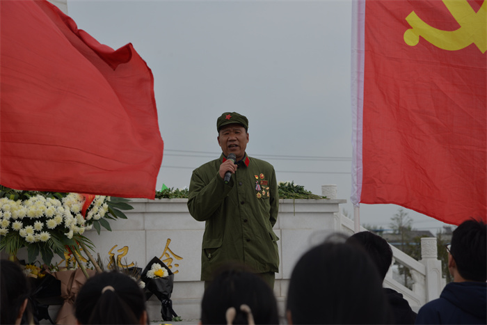 校长李明奎介绍了十人桥战役光辉战绩和革命先烈的感人事迹,鼓舞学生要继承先烈的遗志,自律、自立、自强,努力学习,争做时代的先锋。