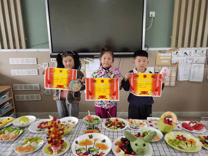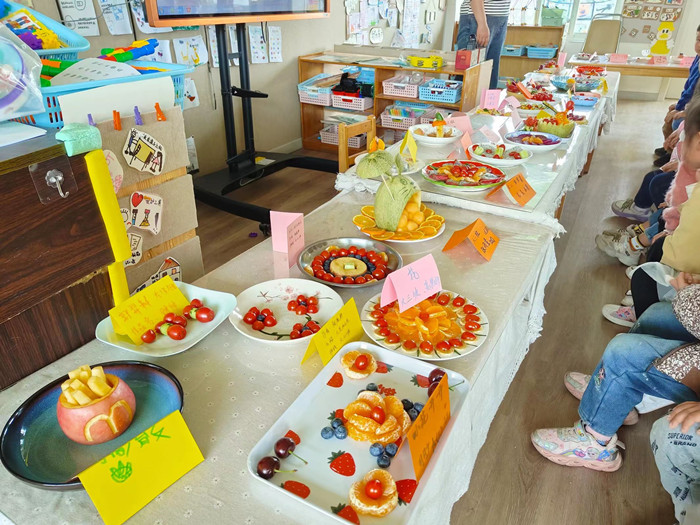 大班组开展的是亲子水果拼盘活动,活动开始前,家长们准备了各种各样的水果,活动现场忙得不亦乐乎。大家都尽情发挥自己的创意,运用灵巧的双手,与幼儿分工合作,共同完成属于自己的水果拼盘。家长与孩子们专注、认真、开心的表情,组成了一幅幅令人感动的亲子同乐的温馨画面。制作完有趣的水果拼盘后,小朋友们也纷纷欣赏各种各样的作品并将他们手中的贴纸投给了自己喜欢的作品。通过孩子们投票最终评选出最受欢迎的三个作品并颁发奖状。
