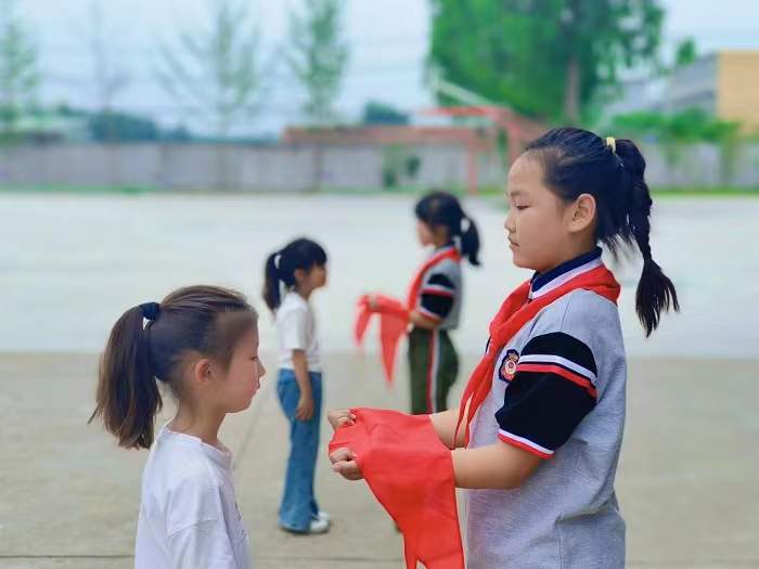 5月26日上午,“红领巾心向党,新时代好少年”一年级新队员分批入队仪式正式开始。雄壮有力的出旗曲响起,三名旗手精神抖擞,庄严出旗。蔡同主任宣读入队学生名单后,蔡瑞卿校长作讲话:“各位少先队员们,希望你们今后健康成长,努力学习,争做新时代好少年!”随后,15名新队员在“星星火炬”旗帜的见证下佩戴上了鲜艳的红领巾。一年级的鲍昱涛同学作为代表发言,他代表全体新少先队员向少先队保证:今后,每位队员将更加热爱祖国、热爱校园、热爱学习,关心集体,团结同学,努力争做优秀少先队员,为少先队争光添彩。