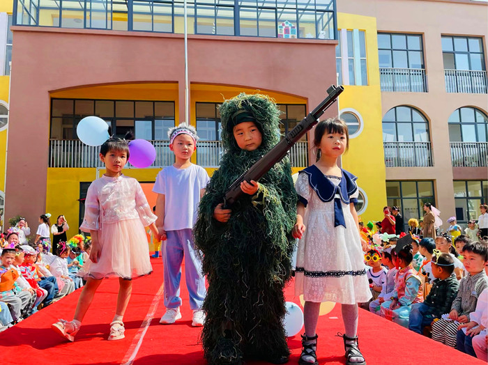 伴随着富有节奏感的音乐,孩子们迈着自信、帅气的步伐一个接着一个走上T台,手里拿着步枪的“绿巨人”、扎着“朝天辫”的白雪公主、翩然而至的森林精灵、优雅的汉服、引起全场孩子尖叫的奥特曼、小哪吒、艾莎公主......每一个孩子都为自己设计了不一样的发型和装扮,再加上孩子们设计的创意定点造型,观看的家长们无一不忍俊不禁,观看的孩子们也纷纷欢呼喝彩。