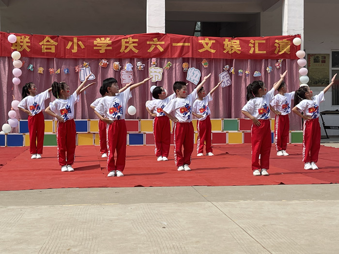 6月1日下午,联合小学的操场聚集了全校师生以及来自联合小学孩子的家长们,一双双期盼的眼睛一直朝着舞台看。一首《金色童年》拉开了这次演出的帷幕。《快乐的节日》、《学习雷锋好榜样》、《外婆桥》、《good time》、《向快乐出发》等等,共17个节目。孩子们穿着精心准备的服装,随着音乐的响起,描绘了孩子们童年时光的欢乐与童真,为孩子们创造出一份幸福和温馨的回忆。孩子们的精彩表演时时被一阵阵掌声所淹没,全体师生和家长们沉浸在一片欢乐的海洋里。