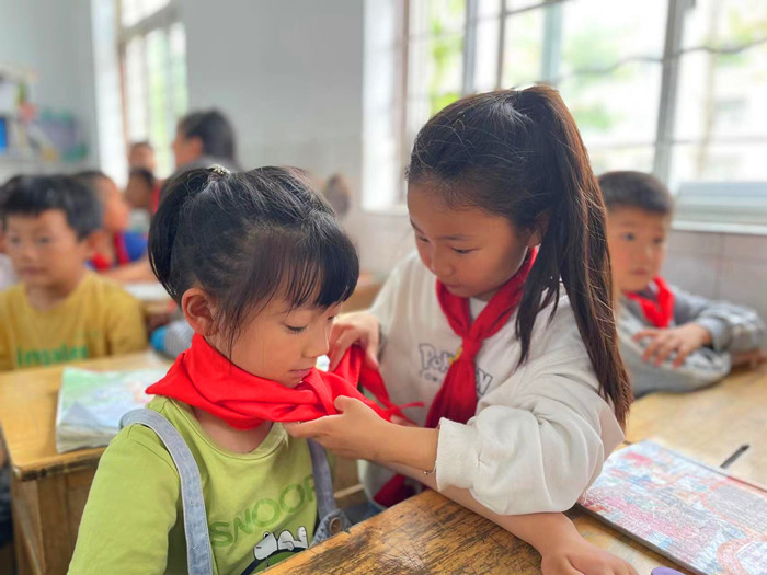 来到了小学,一定要体验一次的一定是和幼儿园的集体活动有很大区别的小学里的一堂课,孩子们走进教室,坐到哥哥姐姐的旁边,一起聆听着小学老师的讲课,孩子们也许也是发现了和在幼儿园不同,也学习着哥哥姐姐们的姿势坐好,有模有样地听着老师的讲课和哥哥姐姐们整齐的朗读声。课间活动时,哥哥姐姐们还在为孩子们佩戴了红领巾,戴上红领巾,感受着成为一名少先队员的光荣,孩子们更进一步地感受了成为一名小学生的与众不同。