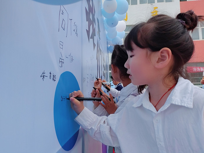 “你好呀,还记得三年前你和老师说的第一句话吗”。孩子们满载着三年来的美好记忆来到签名墙前,留下稚嫩却坚定的印记,有不舍、有难过,但更多的是对未来的憧憬,他们亲笔写下了人生新的篇章。