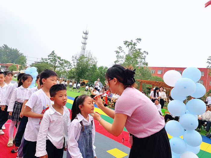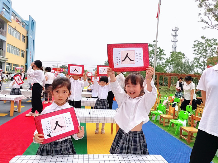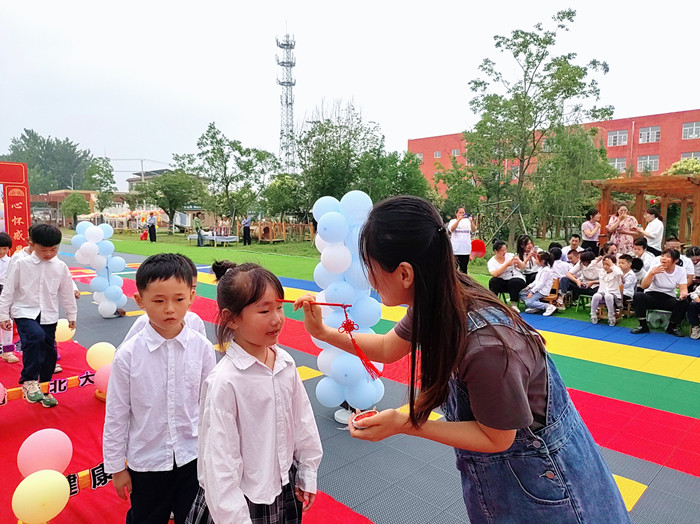 过启智门,跨状元桥。启智即开启智慧的法门,走过启智门寓意孩子们将脱去以往的稚嫩,开始迎接新起点,跨过状元桥,期盼孩子们踏上成功路。童蒙之学,始于衣冠,先正衣冠,后明事理。老师为孩子们点上一颗朱砂痣,意为开启智慧,目明心亮。祝愿孩子们从此一路向阳、永登高峰。击鼓鸣志,读书明理,书鼓和鸣,铿锵成长,孩子们个个精神饱满,意气风发。“孩子们,你们的未来就是祖国的未来,你们的时代就是美好的时代,希望你们用自己的双手和智慧,拥抱美好时代,点亮美好未来!”沈焓莉园长真挚的祝愿每一个孩子。