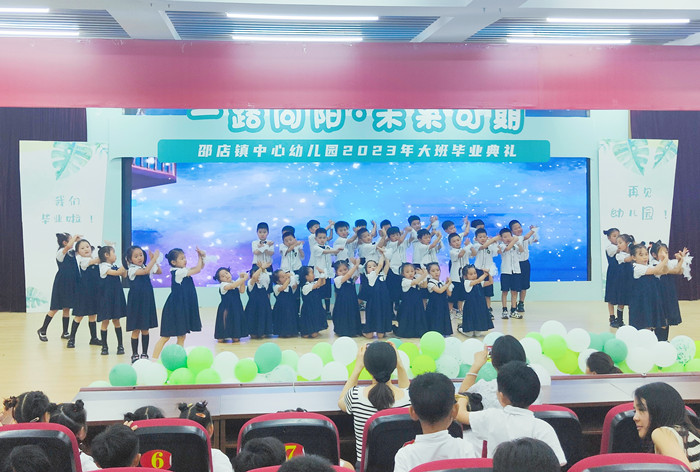 下午大班的孩子们走进邵店镇文明实践广场进行毕业汇演,他们用优美的舞蹈、美妙的歌声诠释了对幼儿园的爱,大一班《送别》、《再见》、大二班《孩子的天空》、《明天会更好》、大三班《那就好好告个别吧》、大四班《把未来点亮》等精彩表演,迎来了一阵阵热烈的掌声;老师们也为孩子们送上毕业祝福,园长与后勤组带来的舞蹈《韵》、大班组情景剧《我们的故事》、中班组情景哑剧《你有我也有》、小班组舞蹈《被子舞》等祝愿孩子们未来可期,前程似锦。