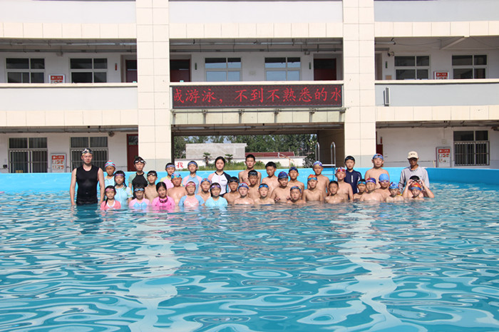培训中,加强对孩子们的基本功训练,做到陆地与水中相结合,规范基本动作,有效避免孩子呛水、失重等现象发生。富有丰富经验的教练俞创业老师,按照独有的“六步两循环”教学法,让孩子们经历了一次“怕水——爱水——驾驭水”的完美历程。