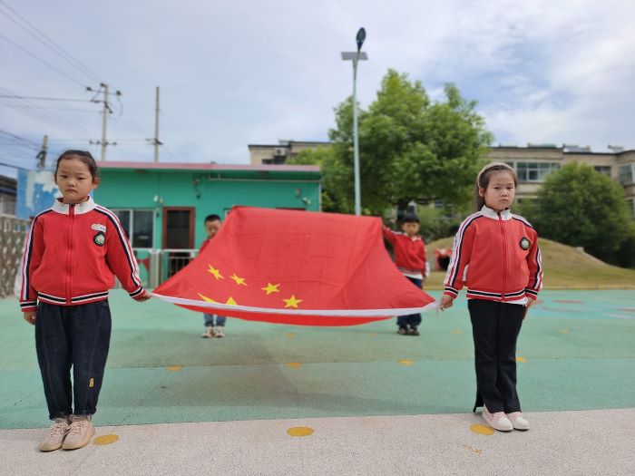 最后,小朋友们高声齐唱《国旗国旗多美丽》,一张张稚嫩肃穆的脸庞流露出对祖国妈妈无尽的爱意!升旗仪式是短暂的,但意义深远。由大班小朋友进行升旗仪式也是我园开展幼小衔接的第一站,旨在让大班小朋友了解小学升旗仪式的内容,激发他们对小学生活及学习的憧憬与向往,减少对小学的陌生感、神秘感,为适应小学生活做好充分的心理准备,也为他们未来顺利进入小学学习奠定了基础。最后祝愿全体窑湾镇王楼幼儿园的小朋友们: 愿你们如快乐的小鸟,飞翔在窑湾镇王楼幼儿园这片蔚蓝的天空,自由而欢畅;愿你们如透明的朝露,点缀在窑湾镇王楼幼儿园这片葱绿的草地,清纯而健康;愿你们如鲜艳的花儿,盛开在窑湾镇王楼幼儿园这片温厚的园圃,独特而芬芳。