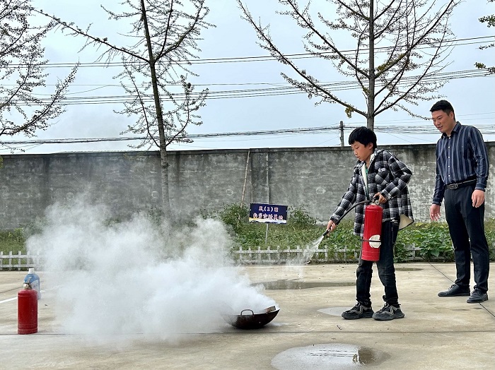 随后,蔡瑞卿校长对灭火器的操作方法及注意事项等进行了详细的讲解,并进行了现场示范。同时,部分教师和学生也体验了使用灭火器灭火的过程。最后,蔡瑞卿校长对此次消防应急疏散演练活动进行了总结,并强调一旦身边发生突发事件,要沉着应对,掌握在危险环境中迅速逃生、自救的基本方法,提高应对突发事件的能力。