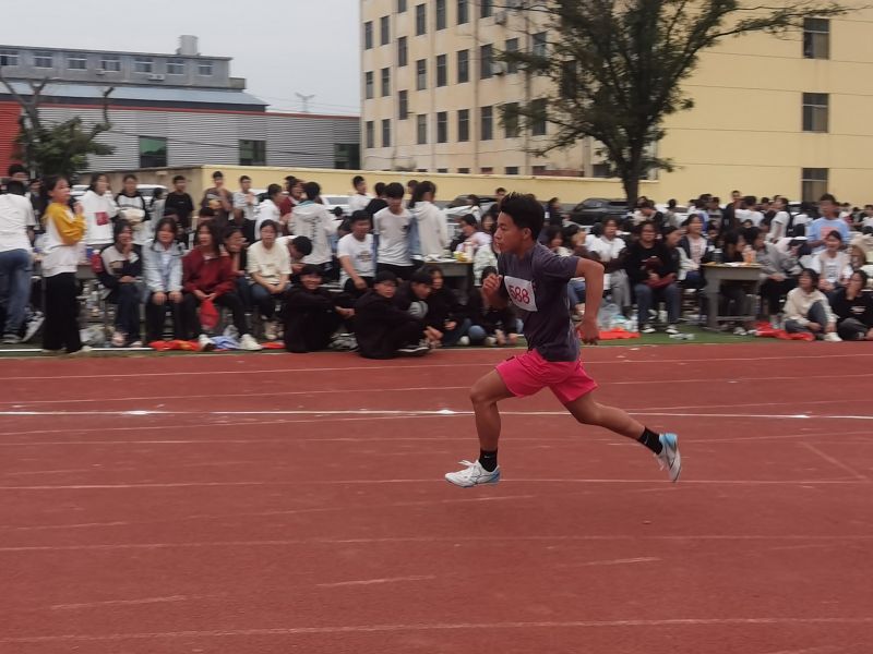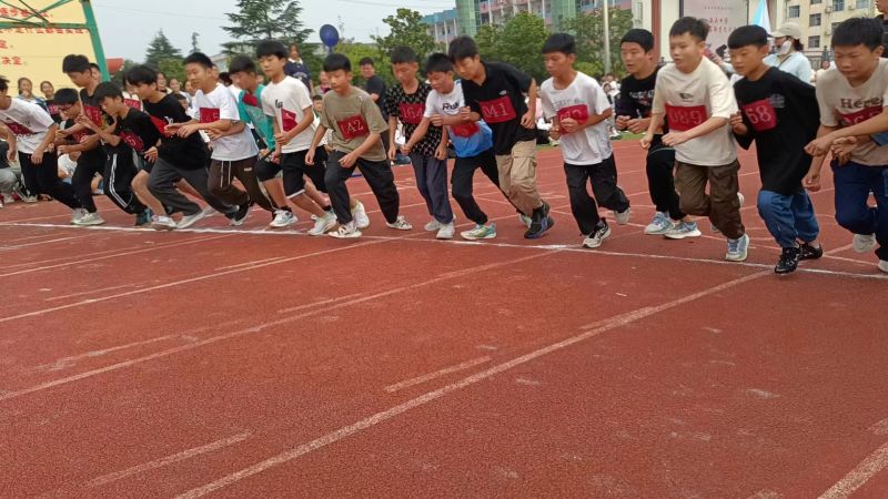 竞赛跑道上,发令枪响,运动员们个个如脱兔般飞离起点,又像利箭般冲向终点。他们调整呼吸,迈开步伐,奋力飞奔,你追我赶……欢呼声、喝彩声、加油声此起彼伏,响彻整个赛场。