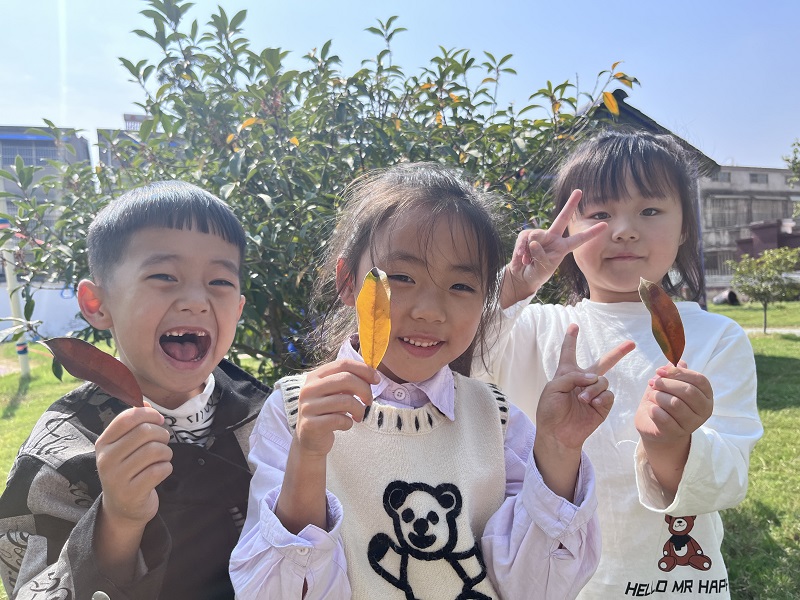 各班级老师针对幼儿年龄特点,别出心裁开展活动。小班幼儿在幼儿园里发现了黄灿灿的柿子和红彤彤的石榴,和老师一起探讨秋天的果实。中班小朋友仔细观察幼儿园的树木,感受大树妈妈的变化。大班小朋友则开展《探秘落叶》的活动,孩子们找到了绿色、红色、黄色、棕色等不同颜色的落叶,也找到了圆形、橄榄型、长条形等不同形状的落叶,厚厚的、薄薄的、脆脆的,各种不同质地的落叶。树叶为什么会变干呢?孩子们带着问题与老师一起探讨,在亲身体验中感受秋天美好。