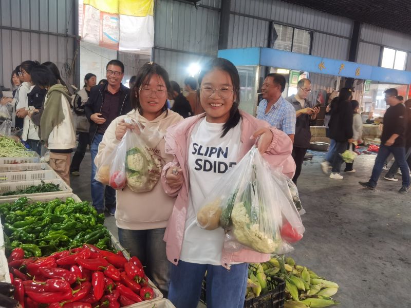 在老师的组织下,同学们来到港头街的超市、菜市场和摊点前,有的单独询问价格、尝试讲价、交钱交货,“淘宝”成功;有的站到卖主身边帮卖主揽生意,让卖主给自己“特殊优惠价”,买到“贴本价”商品;还有的组团“拼单”,跟卖主砍价,谈妥后快乐成交……同学们走到哪里,商家都笑面相迎,讨价还价后满意而归。从文具、玩具、小食品到蔬菜、瓜果、肉蛋、鱼虾等都被同学们“收入囊中”。