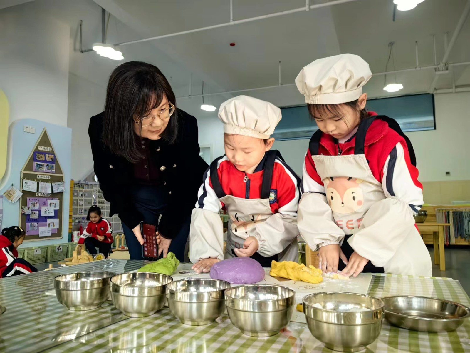 专家组通过查看幼儿园整体环境、场地设置、游戏材料、后勤保障、食堂卫生、环境创设与资源等,初步了解幼儿园整体概貌。该园活动场所一应俱全,满足幼儿主动探索,自主学习的需求,卫生保健工作落于实处,给专家留下深刻印象。评估组一行参观该园户外活动游戏场地,并现场给予指导性意见。