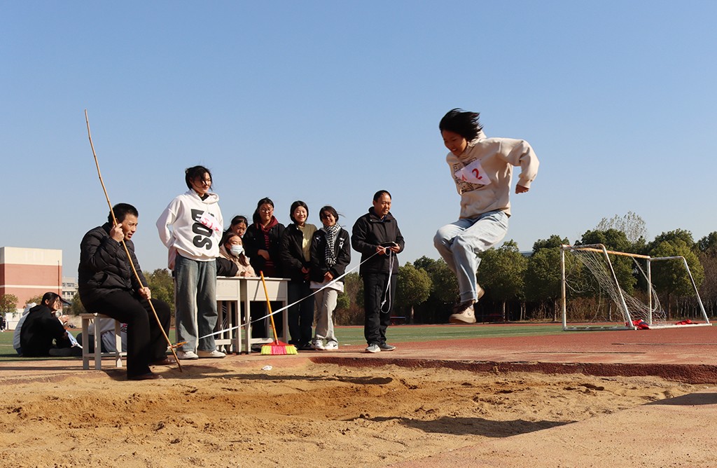 田赛场上,实心球、跳远、跳高比赛同样如火如荼 。沉甸甸的实心球,奋力一抛的瞬间,一道闪亮的弧线划破美丽的长空。助跑,起跳,腾空,落地,跳远健儿干脆利落;助跑、踏跳、过杆、落地,跳高运动员身轻如燕。接力赛则把运动会推向了高潮,在阳光的照耀下,学子们一棒接着一棒,不断传递着团结友爱的信念和奋发向上的力量。