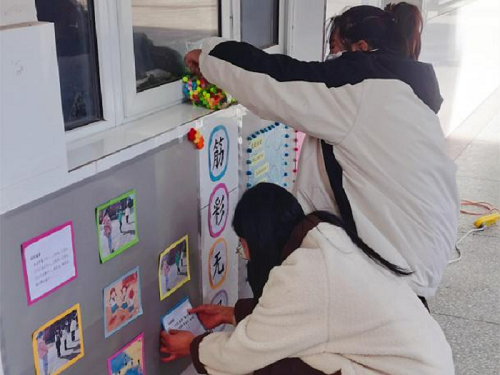 新沂市窑湾镇王场小学为了让“课间十分钟活起来,将学生‘赶’出教室”。师生共同讨论,以学生想法为主体在走廊各处放置学生运动器材布置“乐”趣墙面。
