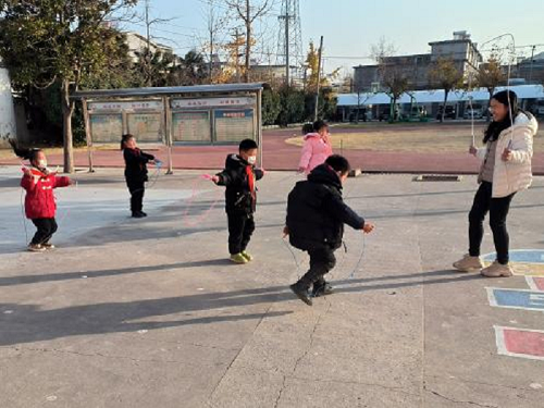 新沂市窑湾镇胜利小学、陆口小学和庄林小学都提供了丰富的课间游戏所需的器材同时在老师的指导下由班级游戏小助手负责保管和维护,确保游戏硬件设施安全牢固。从校长到教干,从教师到学生,人人锻炼,处处游戏。课间短暂10分钟,孩子们玩得既快乐又充实,为下一堂课注入了活力。