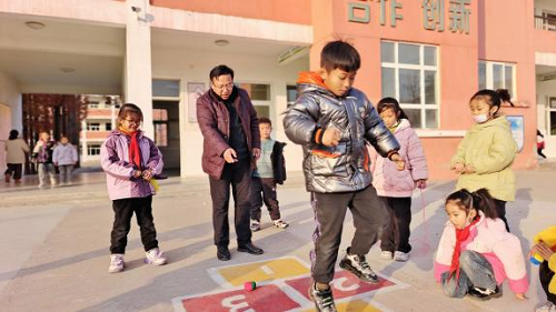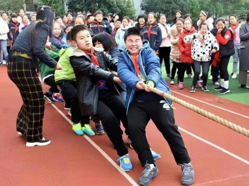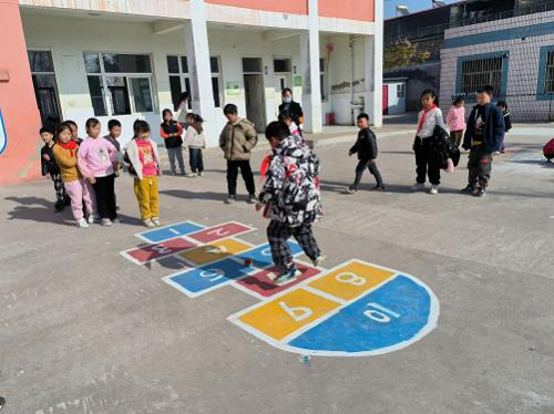 新沂市窑湾镇王楼小学设置各式游戏专区,把拔河、编花篮、跳房子、老鹰捉小鸡、跳皮筋等民间传统游戏引进校园,激活学生的课间十分钟。
