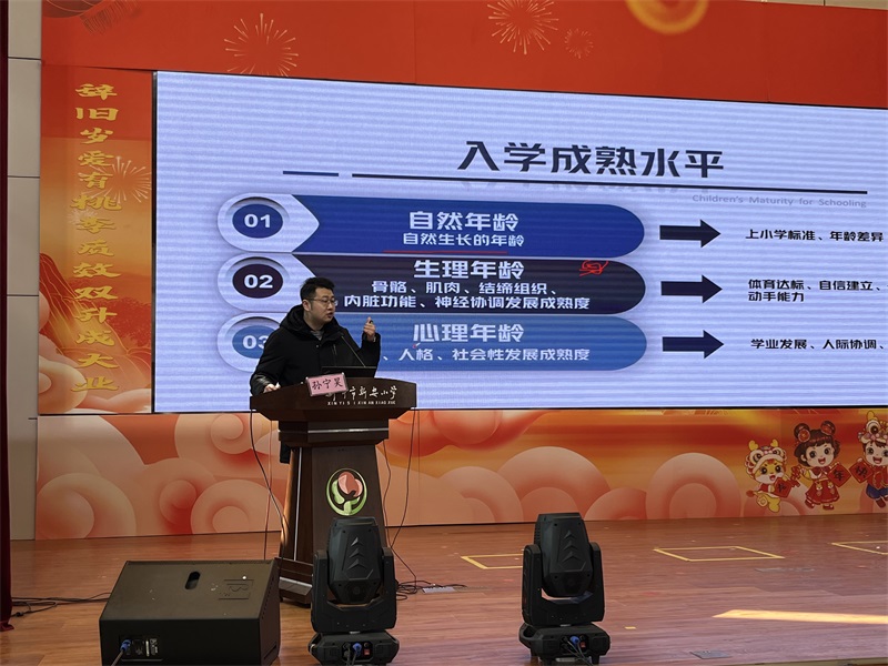 新沂市新安小学副校长王智慧作《幼小衔接父母如何言传身教》主题讲座。她说,家庭环境是孩子成长的土壤,要给孩子营造良好的家庭氛围,就要在语言上积极引导,让孩子向往上学;营造良好的读书环境,让书本触手可及;坚持给孩子写“能量贴”,让进步得到肯定;父母自身持续学习,让孩子耳濡目染。