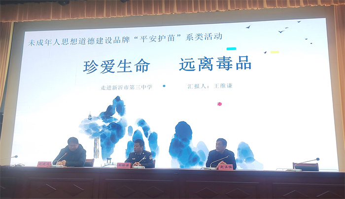 为切实提高全校师生反电信诈骗的能力,让禁毒反诈斗争意识深入人心,进一步营造全民禁毒、人人反诈的浓厚氛围, 3月20日,新沂市第三中学携手市公安局北沟派出所共同开展禁毒反诈主题宣传活动。副校长赵正强、德育主任赵建成、安保科长吴秋池、全体班主任\部分学生代表等参加活动,活动由赵建成主持。