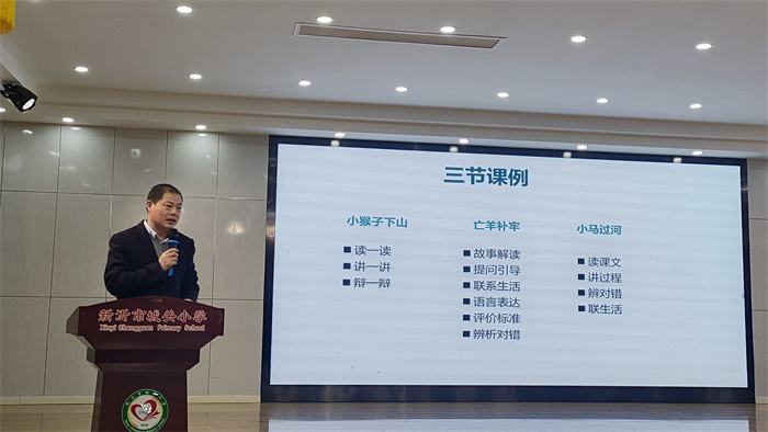 第一个议程是课例展示。王旭旭、屈利新、袁蕊三位老师分别执教一年级下册《小猴子下山》、二年级下册《亡羊补牢》和《小马过河》三节展示课,课例结合单元语文要素和第一学段学生思维发展、认知水平等特点,通过阅读、讲述、讨论、辩论等方式,引导学生思考问题,促进阅读质疑和追问的产生,让学生能有根据地表达自己的观点,自主解决问题,以此达到学以致用的目的。