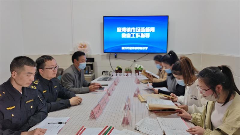 参观食堂后,大家一起到会议室查看资料、交流学习,互相传阅资料记录,认真对照,交流经验。窑湾镇中心小学徐泗良副校长一再叮嘱各校园食堂负责人注重细节,细节决定孩子们的安危,决定着家长对学校的放心程度。