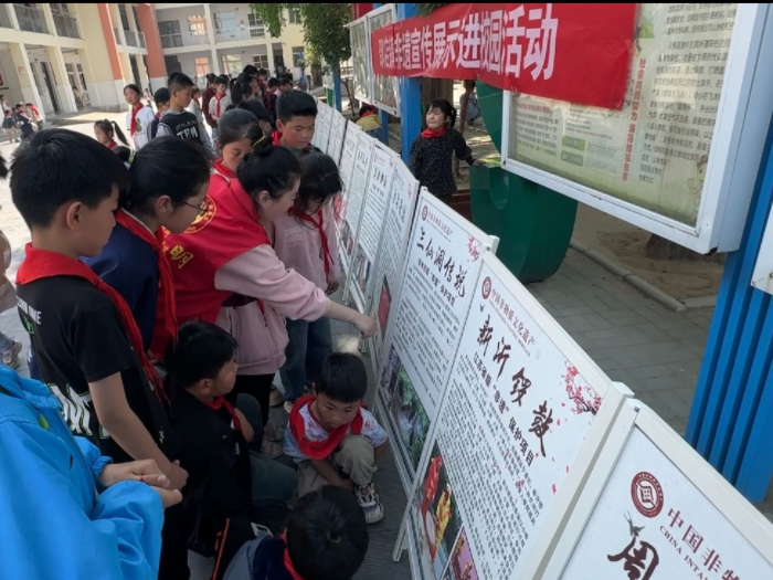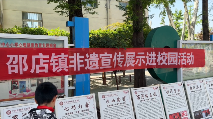 为进一步弘扬新沂市非遗文化,激发学生对本土非遗文化的兴趣,4月28日,邵店镇人民政府把新沂非遗文化带进了邵店镇中心小学。本次活动把新沂蓑衣、拾石子游戏、姜家辫子辣汤、新沂捆香蹄、新沂柳琴戏等新沂市非遗项目在校园展示,让孩子们感受传统文化的魅力。