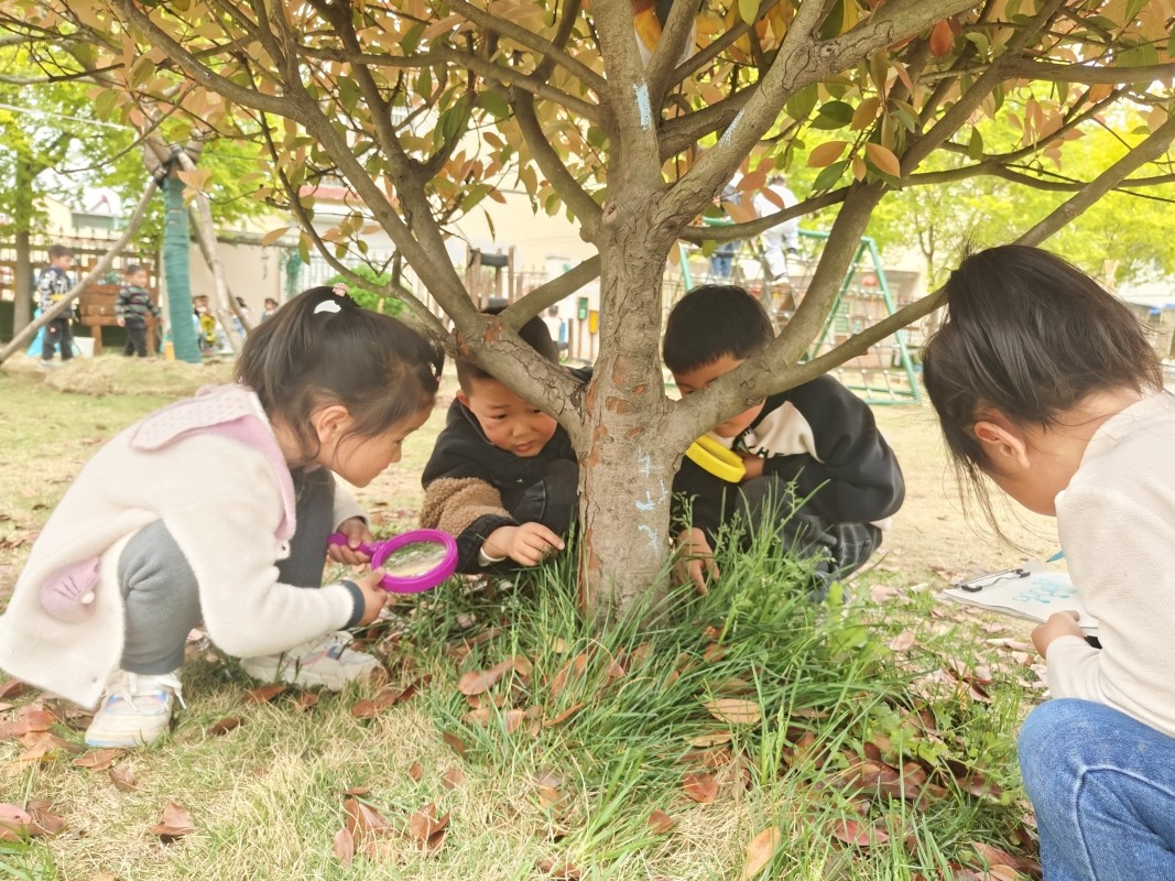 孩子们好奇地蹲在地上寻找,用放大镜观察着蚂蚁,“你看,蚂蚁在努力往树上里爬呢”“小蚂蚁有两个触角,它还躲起来了”“蚂蚁也喜欢躲在土里,它还会搬大米吃”。他们用童真的笔触将自己的新发现画了下来并与同伴分享。在分享交流中,初步了解了蚂蚁的外形特征、生活习性等。在与蚂蚁的相遇过程中,孩子们的好奇心、观察力、求知欲、表达交流不断发展,并将获得的新经验迁移到生活学习中,引发了深度学习。