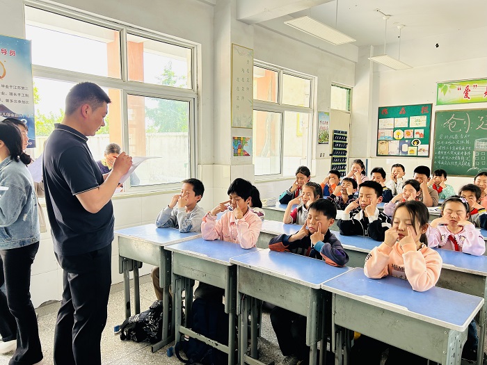 赛前,学校制定了眼保健操评分方案,班主任利用做操时间帮助学生找准穴位、规范动作。5月11日下午,随着音乐的响起,学生们精神饱满、端正姿势,按照动作要领有节奏地按揉眼睛。蔡瑞卿校长带领各位评委们走进班级中,从精神面貌、个人卫生、准备姿势、动作等项目进行评比打分,并对穴位不标准的学生现场进行纠正、指导。评比活动圆满结束,各班级表现出色,评委们秉持公平公正的原则最终评选出“爱眼护眼班级”一、二等奖,蔡瑞卿校长为获奖班级颁发奖状。