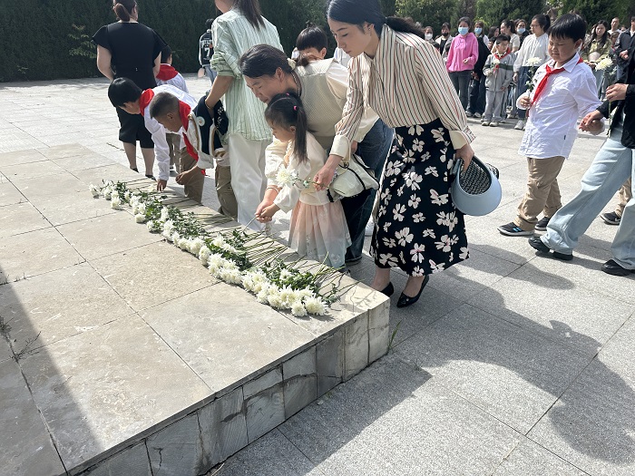 上午九点左右,邵小和新小近百余名学生及学生家长相约来到了邵店镇徐圩烈士陵园,两校学生携手站在革命烈士纪念碑前,共同缅怀革命烈士的丰功伟绩,追思为民族独立、人民解放、国家富强和人民幸福英勇献身的烈士们。悼念结束后,孩子们和家长献上手中的小白花,表达他们对烈士们的崇敬和怀念之情。