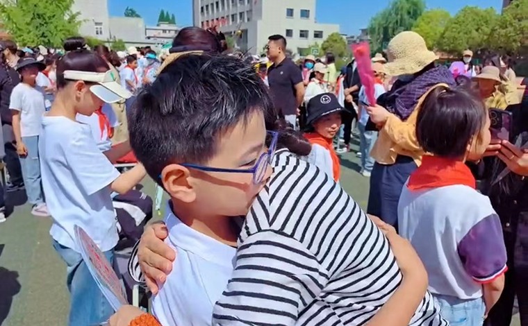 同学们纷纷向家长献上鲜花,并向家长宣读感恩信。四(4)班家长代表上台发言,她用深情的话语为孩子们送上祝福。从稚嫩到心存感恩,亲子相拥,流下的是幸福与感动的泪水。