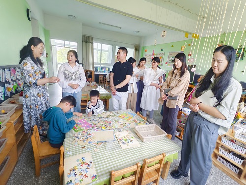 观摩中,大家重点观察班级环境的创设,重点研究投放的材料是否存在隐形的“高控”,对每一位孩子如何与环境“对话”、与材料互动进一步深挖,了解班级环境创设背后的教育价值。