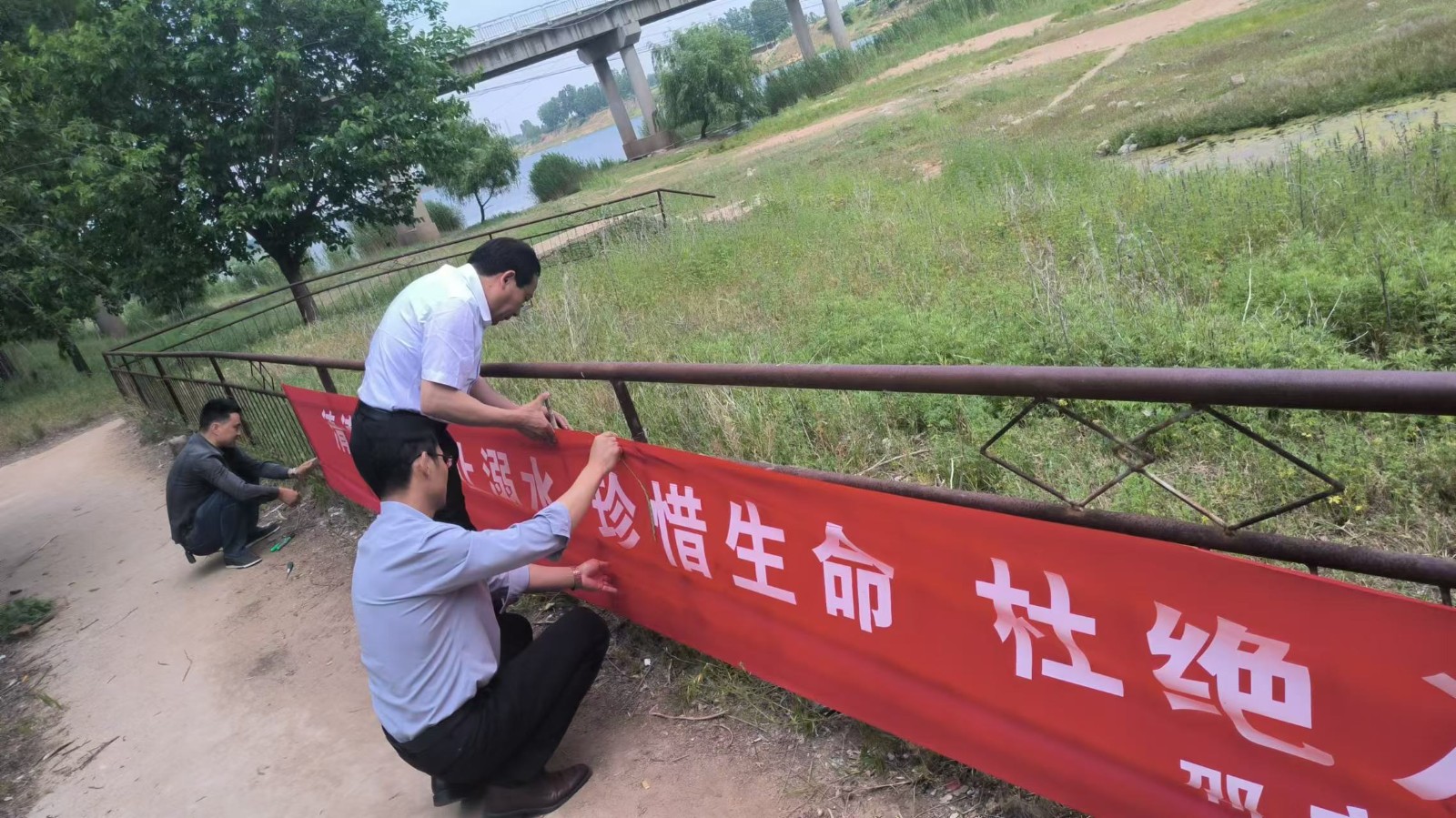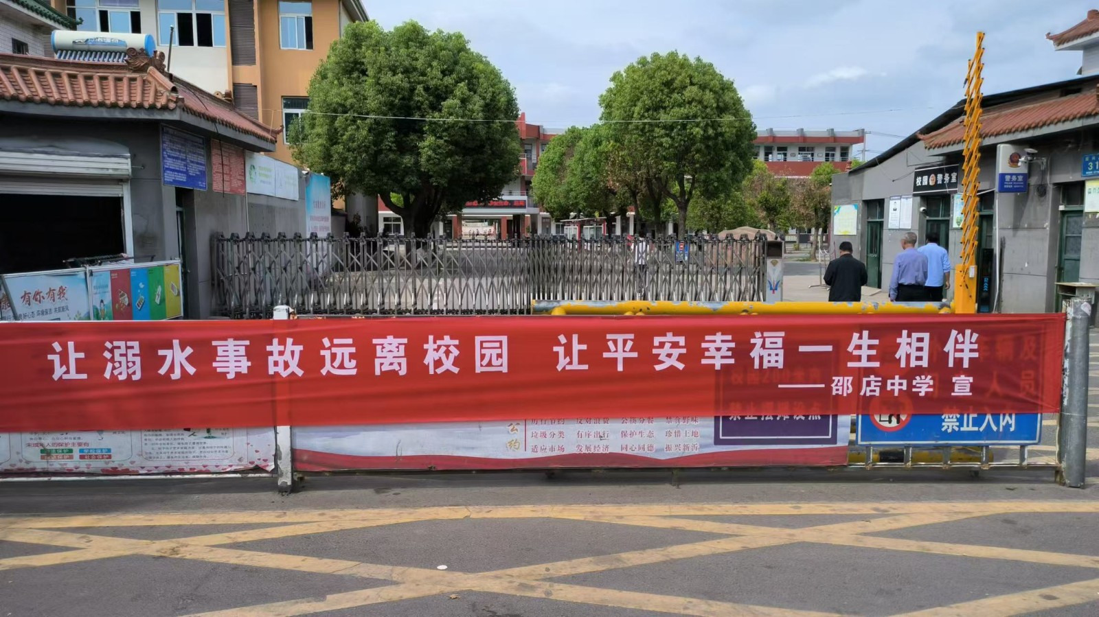 悬挂防溺水红色横幅 筑牢学生生命安全防线