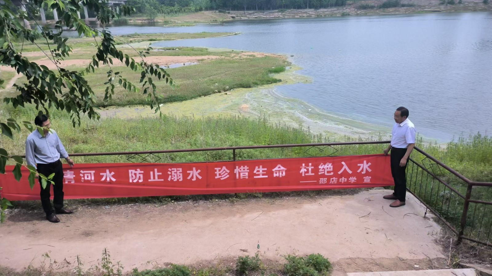 气温逐渐升高,溺水事件进入易发期、高发期。为进一步增强学生的防溺水安全意识,提高自我防护救护能力,有效预防学生溺水事件发生, 2024年5月21日上午,邵店中学孙华山校长带领教干,在新沂河、月河、三邵干渠、沭河、村庄内外塘及排水沟,排查重点水域,部署安排“防溺水”宣传标语。他们克服河边风大、横幅位置不确定、标语地点定位环境层面多等诸多不便,以上级“防溺水”精神和孩子们生命健康为动力,在重点水域旁悬挂了多幅防溺水宣传标语。