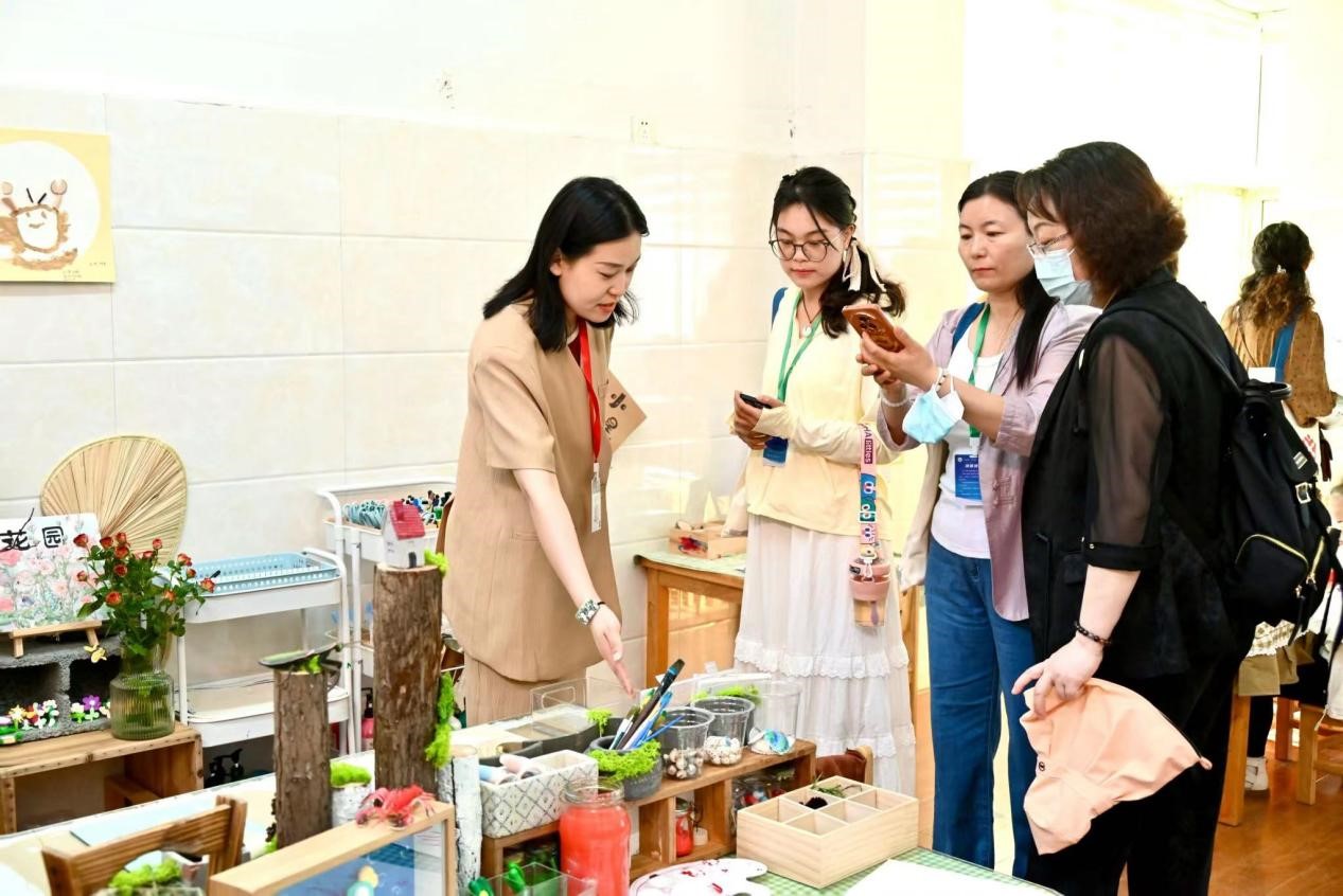 5月28日上午,来自全国200余名幼教同行走进城北幼儿园。观摩老师们在讲解员的带领下观摩室内、室外的自主游戏,深入感受孩子们的“真”游戏。观摩教师们身处“儿童视角”育人环境,体会幼儿游戏的精彩,发现儿童自主成长的力量。在具有生命力且幸福温馨的童年院子样态中,儿童自由、自主、舒展、沉浸式的一日生活,给观教师留下深刻印象。
