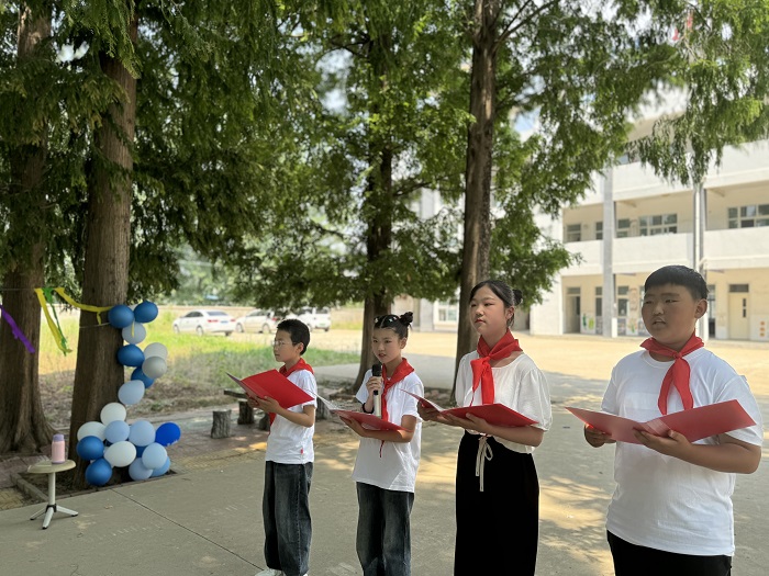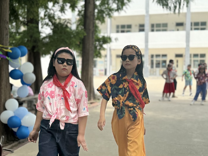 “校园最炫你我他”。微风习习的水杉树下就是孩子们天然的舞台,师生们精心布置的装扮处处洋溢着节日的浓浓氛围,三年级和四年级的串烧不分伯仲,孩子们用灵动的身姿诠释着童年的欢乐与童真,迎来一阵阵掌声和喝彩,五年级朗诵《老师,我们明天几点到校》和六年级小品《最后一堂课》则让全体师生泪目动容,仿佛又是在诉说着七月的离别,而舞蹈《科目三》和《大香蕉》又将大家的思绪重又拉回到欢乐的氛围中。