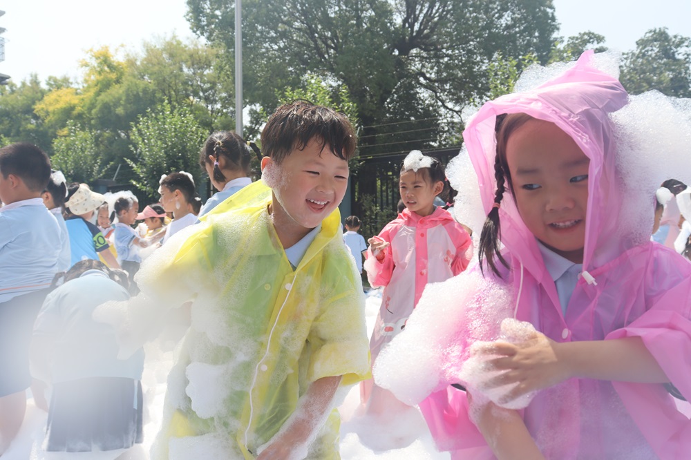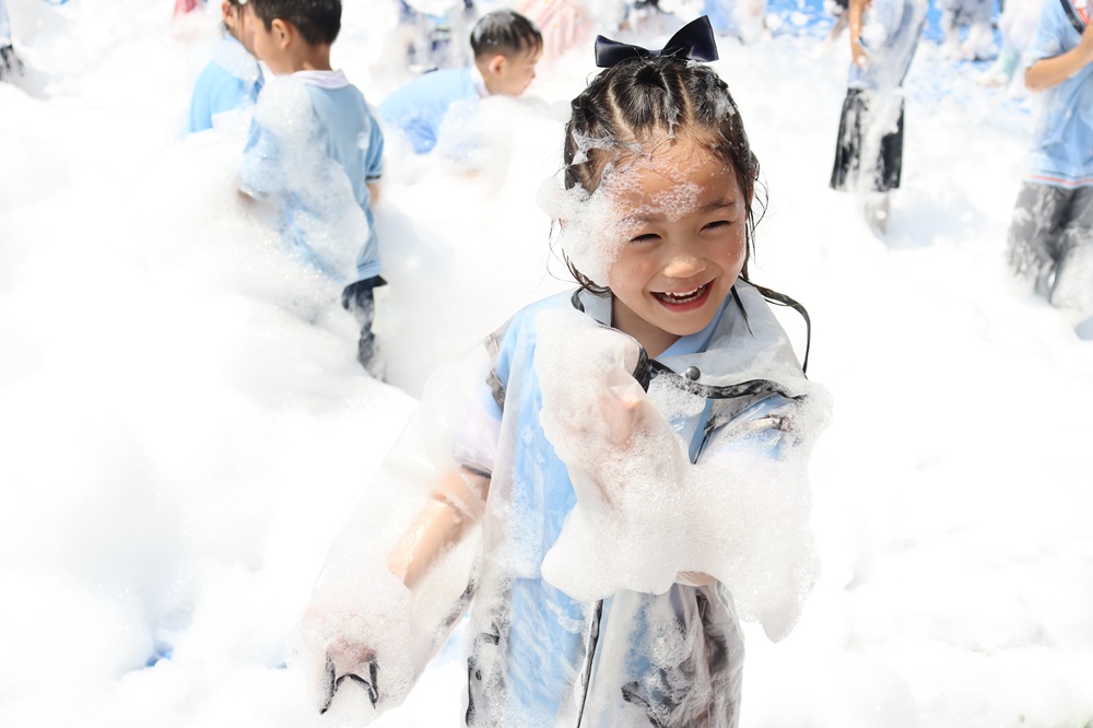 孩子们在泡泡中穿梭,嬉戏打闹,尽情享受着这份梦幻般的快乐。老师们也加入其中,与孩子们一起欢笑、玩耍。
