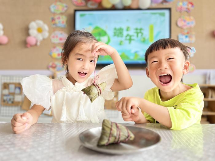 教师和小朋友们共同体验多种多样的端午节习俗。小班小朋友玩起旱地“划龙舟”比赛,化身一个个“赛船手”,齐心协力向终点冲刺。中班幼儿学习包出形态各异的粽子,并在品尝成果中感受劳动的喜悦。大班小朋友在彩蛋上绘制出各种有趣的图案,展现他们的创意和想象力。
