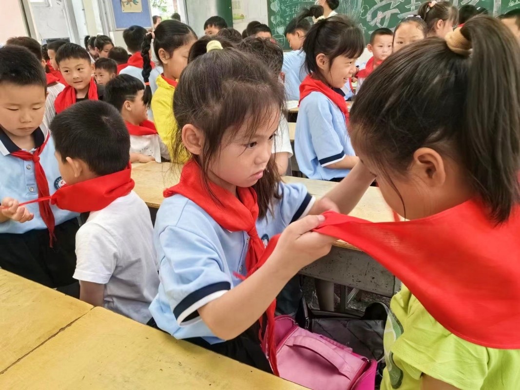小朋友们整齐地排列成队,跟随着老师的脚步,怀着好奇与憧憬依次参观了操场、教室、校史室……大家的小眼睛不停地左看看、右瞧瞧,周围的一切都是如此新鲜。接着,他们走进期待已久的小学教室,举行红领巾交接仪式,零距离感受小学的课堂氛围。实地参观小学后,孩子们更加地了解了小学生活。