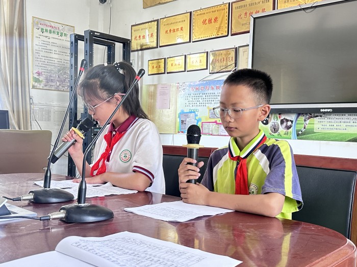 小百灵广播站宣传。结合少先队阵地“小百灵”广播站,播报《“石榴籽”一家亲,民族团结共奋进》稿件,并播放民族团结歌曲,使民族教育潜移默化,润物细无声,使学生形成了民族团结的基本意识,增强广大学生的爱国情怀。