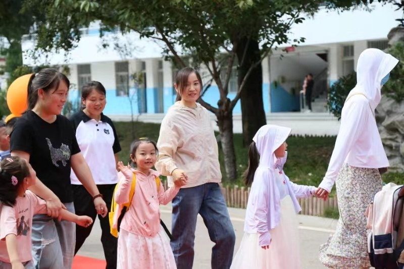 沐浴着秋日的阳光,小萌宝们拉着家长的手,充满好奇、满心欢喜地走进校园,校领导和老师们热情地迎接。孩子们和家长手牵手共同走过拱门,走向自己美好的小学时光。