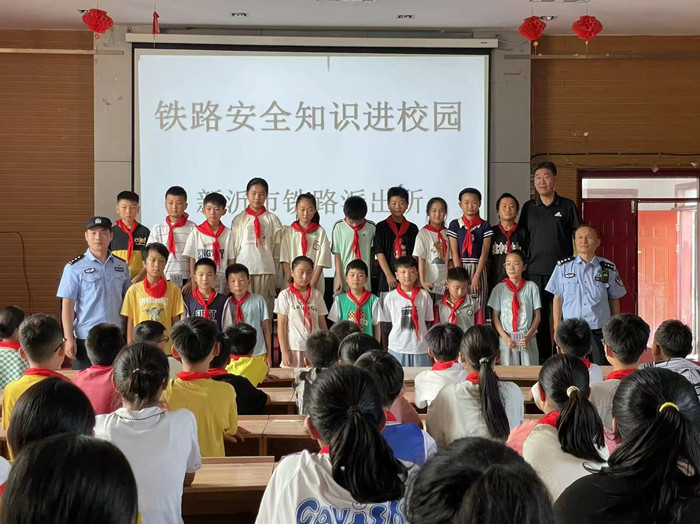 活动中,李秀品所长一行对新世纪小学的师生进行爱路、护路的铁路交通安全教育,从夏季预防溺水、预防校园欺凌等方面进行法治教育讲座培训,同时号召师生积极向家人和身边的朋友宣传安全知识,并现场为20名“安全小卫士”进颁奖。