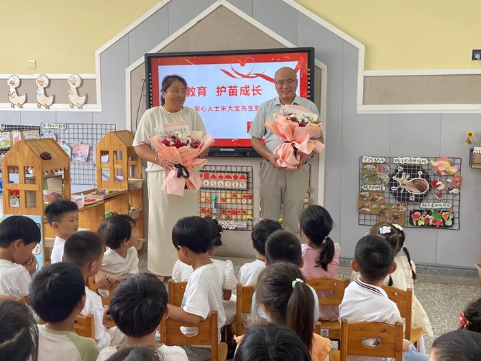 爱心人士宋大宝先生在陈楼村书记李蒙陪同下来到该园,开展教师节走访慰问活动。宋大宝捐赠十余辆儿童脚踏三轮车,孩子们为宋大宝献上鲜花,园长朱良龙对宋大宝捐资助学的慷慨义举表示感谢并颁发荣誉证书。爱心人士一行参观幼儿园设施环境及教学活动。该园将继续携手社会爱心力量,汇聚助力幼儿成长的强大动能。