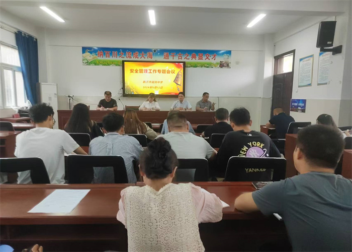 9月12日,新沂市城岗中学召开安全管理工作专题会议,全体教干、班主任、理化生实验室管理人员、体育音乐学科教师以及门卫等人员参加了本次会议。