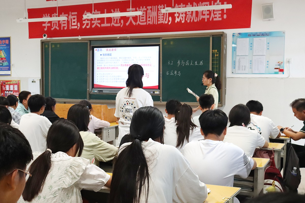 本次研讨活动围绕“落实三新四行动 提高教学质量”的主题展开。第六中学九年级陈方莹老师为与会教师展示了九年级上册《参与民主生活》一课。