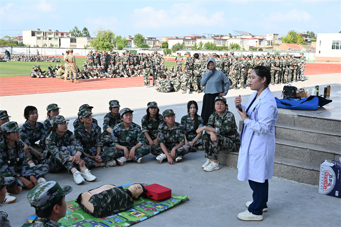 训练间隙,还安排了红十字救护培训、宿舍内务整理、军体拳表演、战术演练等内容。教官们组织班级团队开展拉歌比赛,同学们积极参与,操场上传来一阵阵团结的口号声、嘹亮的军歌声、青春的欢笑声;教官和班主任与同学们交流心得,互相倾听,为靓丽的青春添加了一抹亮色。