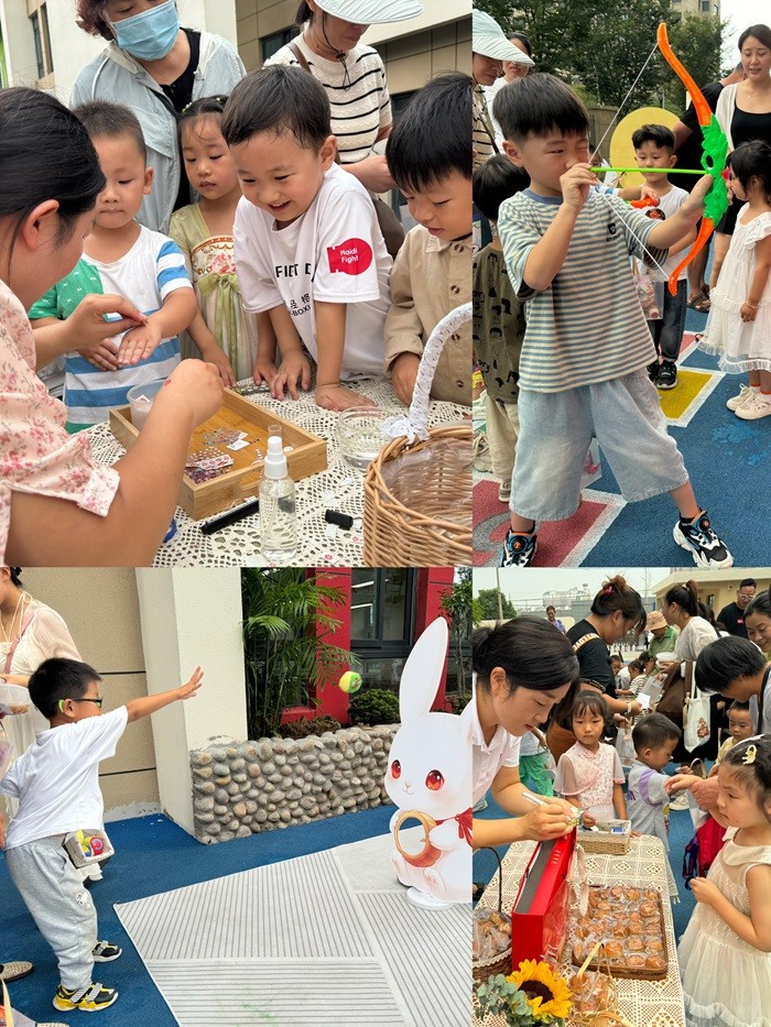 幼儿园营造浓厚的中秋氛围,开展各式活动,有“以漆为笔,以水为画”的非遗漆扇体验,有深受幼儿欢迎的传统游戏套圈,有古老且具有鲜明民族特色的投壶游戏,拉大弓、射大箭的射箭游戏。游戏之余,孩子们品尝甜甜的月饼,配上一杯清香的果茶,形成一份甜蜜的回味。