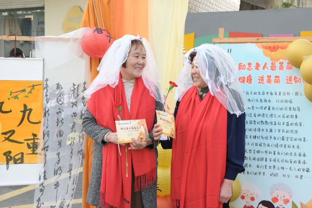 送一份美丽自信。爱美之心人皆有之。虽然岁月在额头留下了印记,但是属于每个年龄的美从不褪色。活动现场,园长带领老师们为老人们戴上洁白的头纱,披上鲜艳的围巾,鼓励老人们自信的站到了镜头前面,留下了他们最美丽的瞬间。