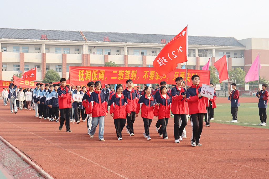 上午8时,运动会开幕式正式开始。伴随着激昂的运动员进行曲,国旗护卫队迈着整齐有力的步伐率先入场,他们身姿挺拔,目光坚定,手中的五星红旗熠熠生辉。紧随其后的是校旗队、彩旗队和各班运动员代表队。各班方阵口号嘹亮,步伐矫健,充分展现了第六中学学子积极向上、团结奋进的精神风貌。