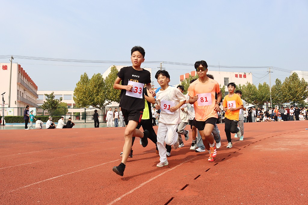 随着一声发令枪响,运动会各项赛事陆续展开。赛场上,运动员们奋勇争先,短跑项目中,选手们如离弦之箭,奋力冲向终点,速度与激情的碰撞引得观众们阵阵欢呼;长跑比赛则是一场毅力与耐力的较量,运动员们坚定的眼神和挥洒的汗水诠释着坚持就是胜利的信念;跳高、跳远场地,同学们身轻如燕,在空中划出一道道优美的弧线;实心球比赛区域,运动员们卯足了劲,将手中的实心球奋力投出,要把自己的力量传递到更远的地方。4×100 米接力赛,每一棒的交接都承载着信任与期望,选手们紧密配合;赛场下,同学们激情呐喊,为运动员们加油助威;一篇篇热情洋溢的广播稿如雪花般飞向主席台,以梦为马,不负韶华,通讯员极具感染力的加油话语为场上的运动员们注入了无穷的动力。为了丰富运动会内容,增进师生情谊,运动会最后一项由教师4×100米接力赛完美收尾。