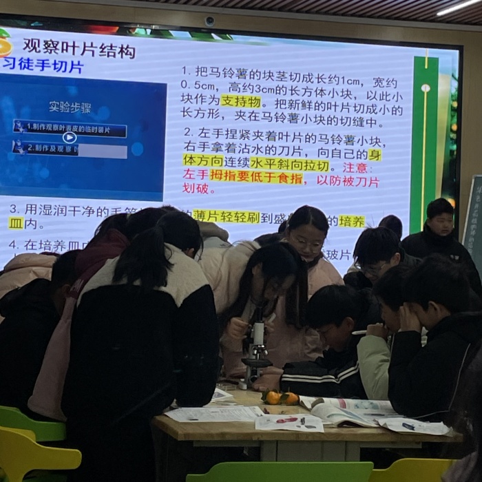 第十中学的窦煜老师展示了七年级上册《绿色开花植物的结构层次》一课。通过一台台精密的显微镜,带领学生们操作显微镜,亲眼见证了植物构造的奥秘,激发了学生们对大自然无限的好奇心和探索欲,体验到科学探索的乐趣与魅力。
